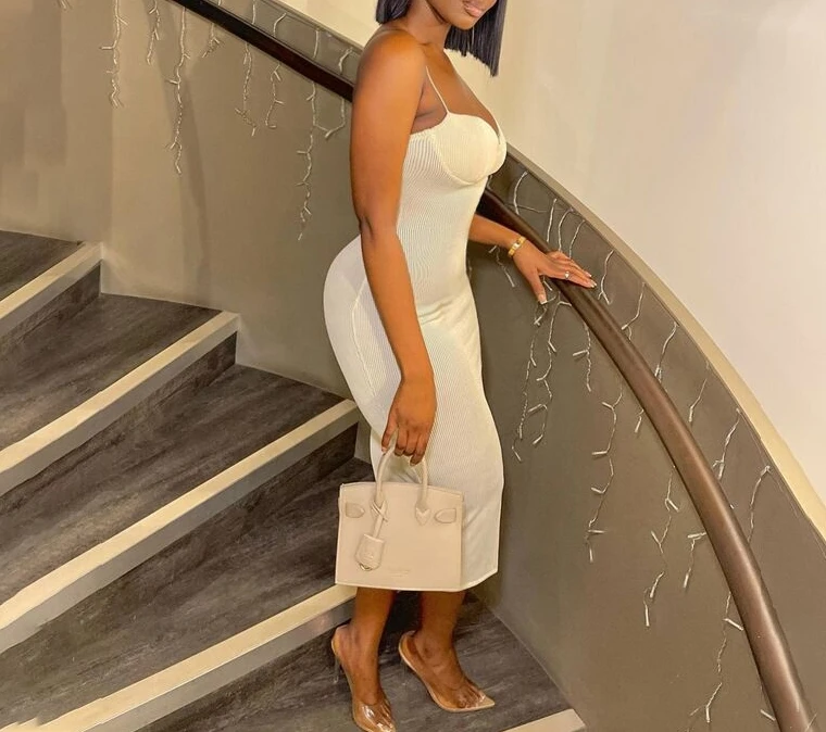 Sexy Long Dresses Women’s Summer V-Neck Chest Strap Elegant Fashion Solid Color Basic Versatile Daily Women Bodycon Dresses